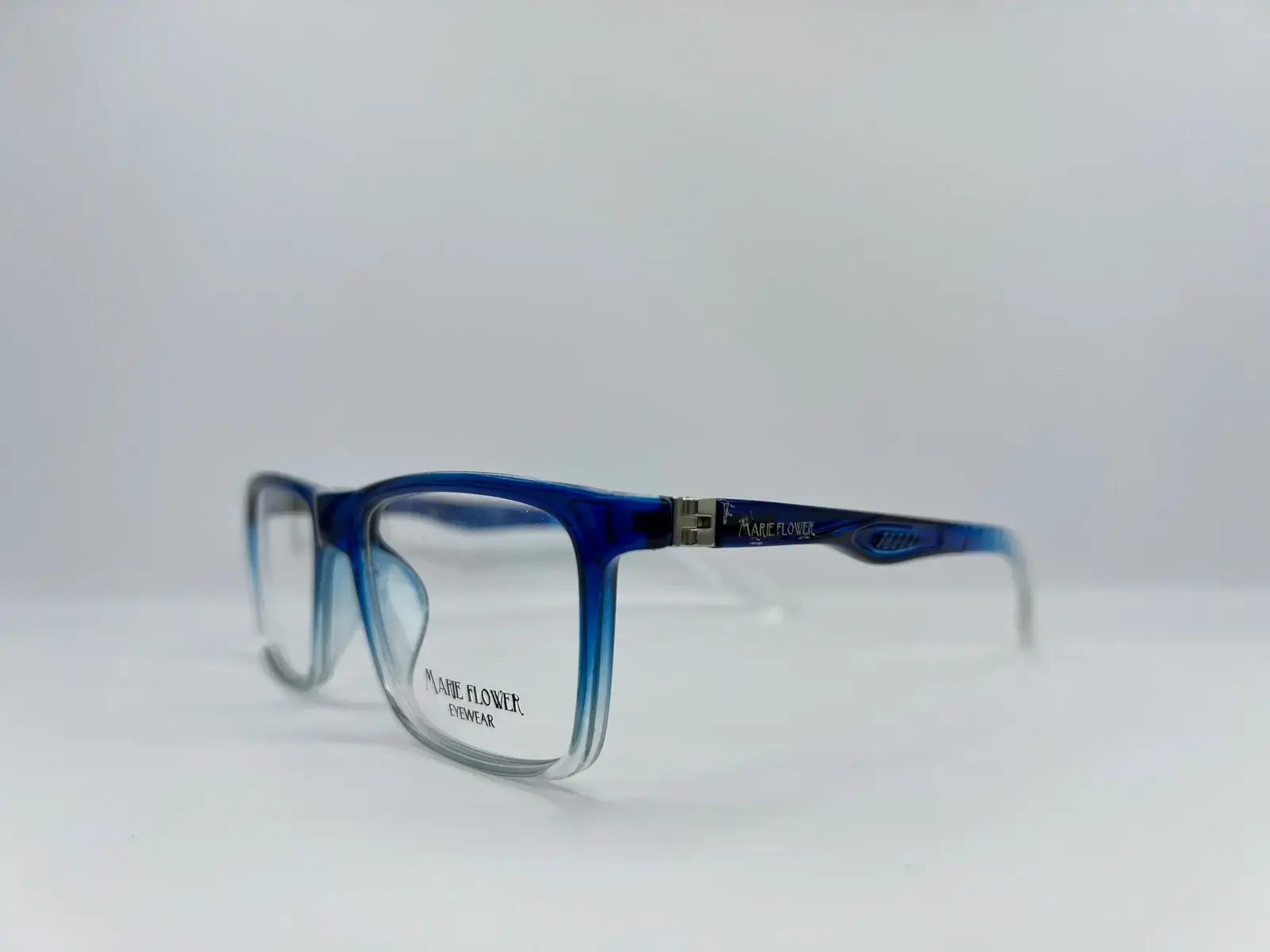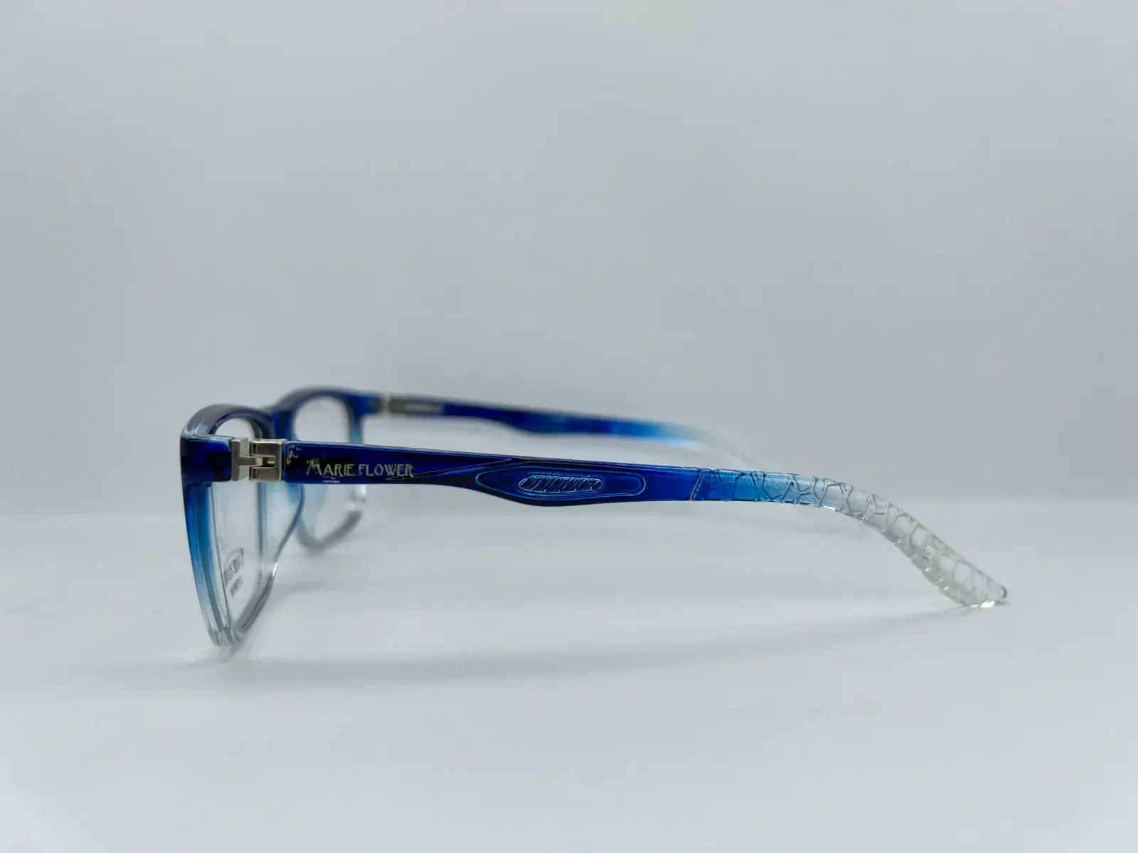 The Azure Veil-02005 eyewear blends modern clarity with a soft pop of color for a look that feels fresh, polished, and effortlessly stylish. Featuring a translucent crystal frame that transitions into a rich blue upper rim, this design adds subtle character without overpowering your face.