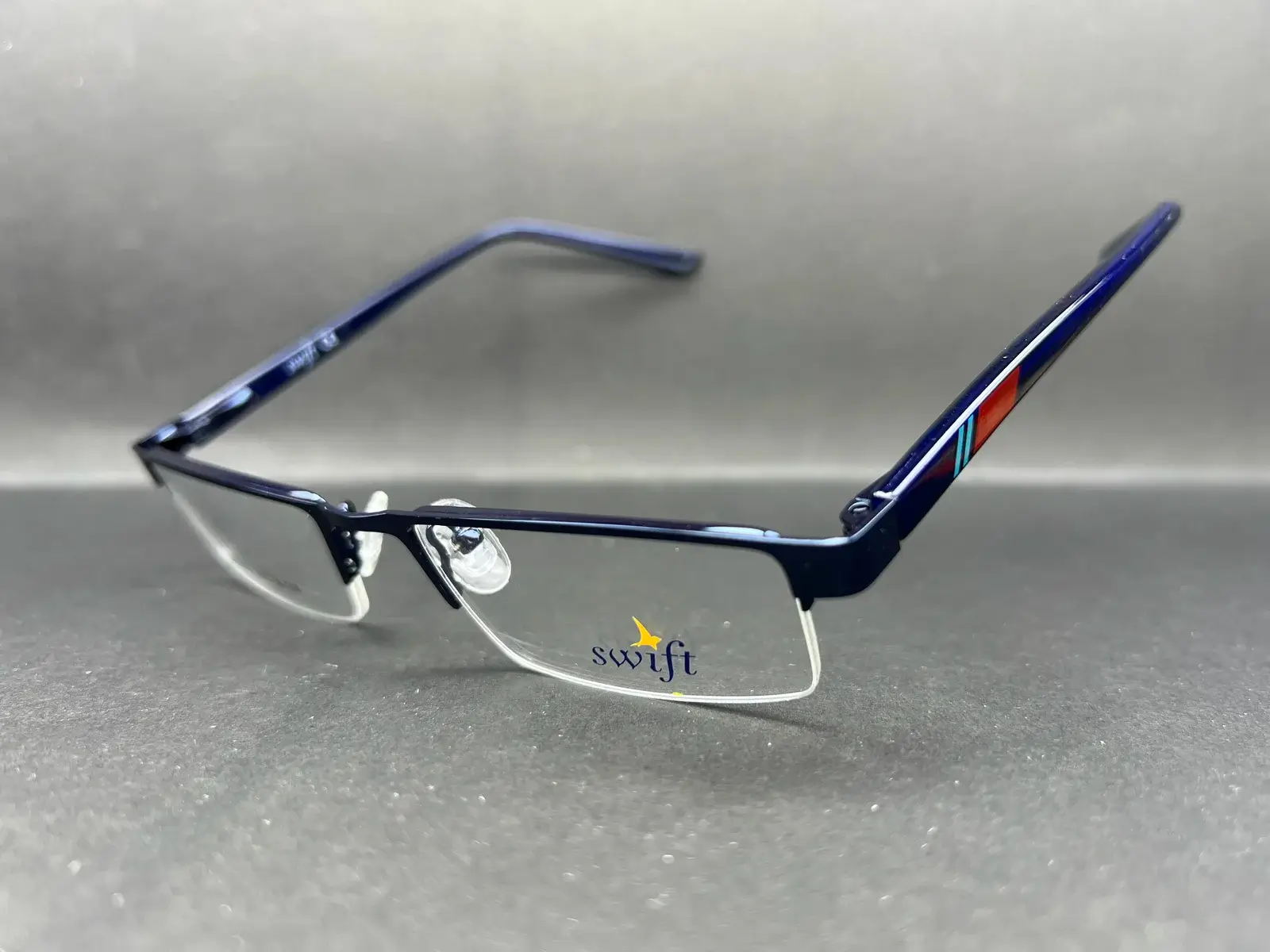 Crafted with a sleek metal semi-rim front, this frame provides durability without visual bulk. The nylor lens mounting enhances its lightweight feel, while adjustable silicone nose pads ensure a secure and comfortable fit throughout the day. The temples feature understated contrast colour stripes, adding a subtle sporty edge without compromising its refined aesthetic.
