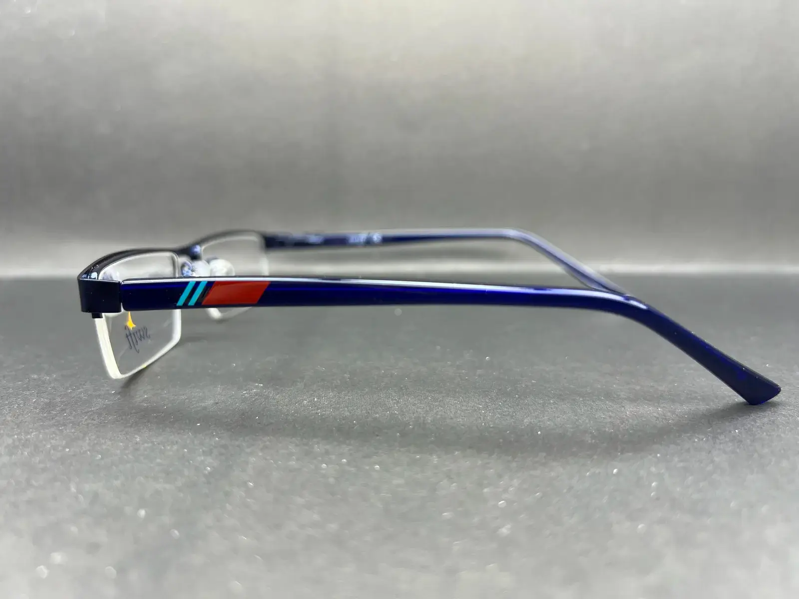 Colour: Dark blue metal front with contrast colour-accent temples
