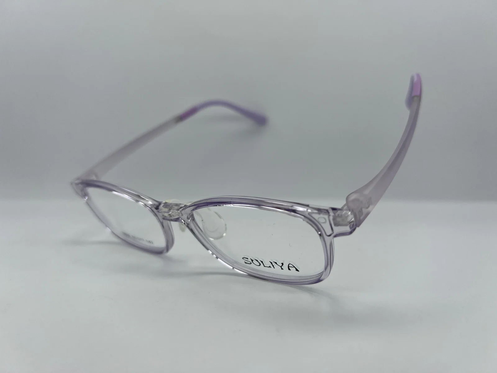 The transparent plastic front creates a fresh, minimal aesthetic, while the integrated saddle bridge with molded nose pads ensures a comfortable, stable fit throughout the day. Designed for durability, the temples feature a reinforced metal core, fully encased in clear plastic, delivering added strength without compromising on lightweight comfort. The look is completed with violet temple tips, adding a subtle pop of colour and enhanced grip behind the ears.