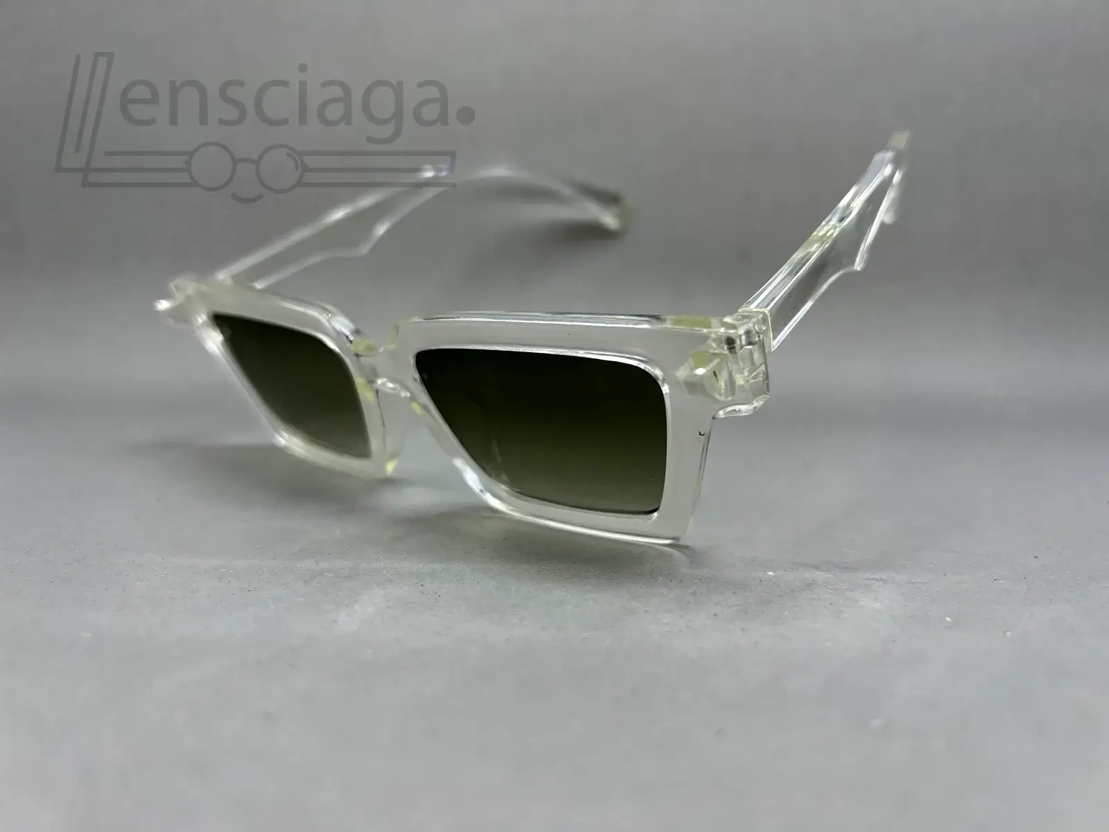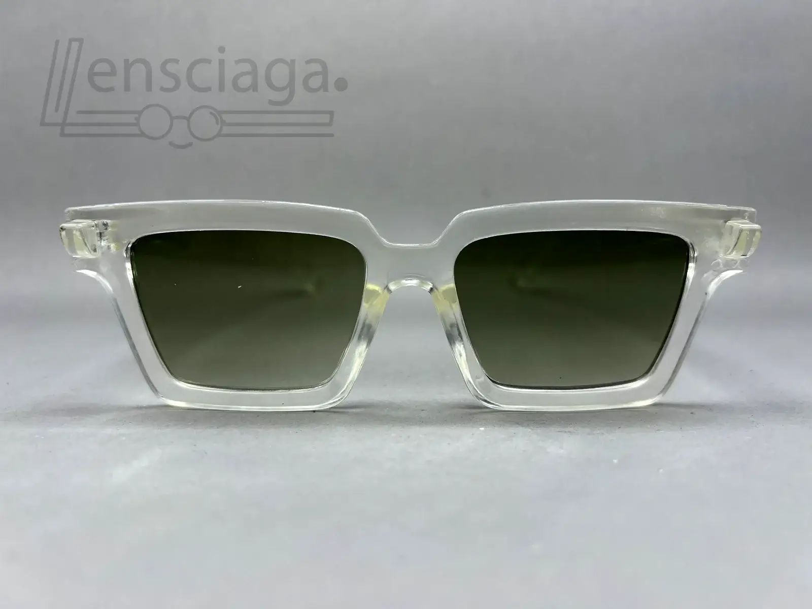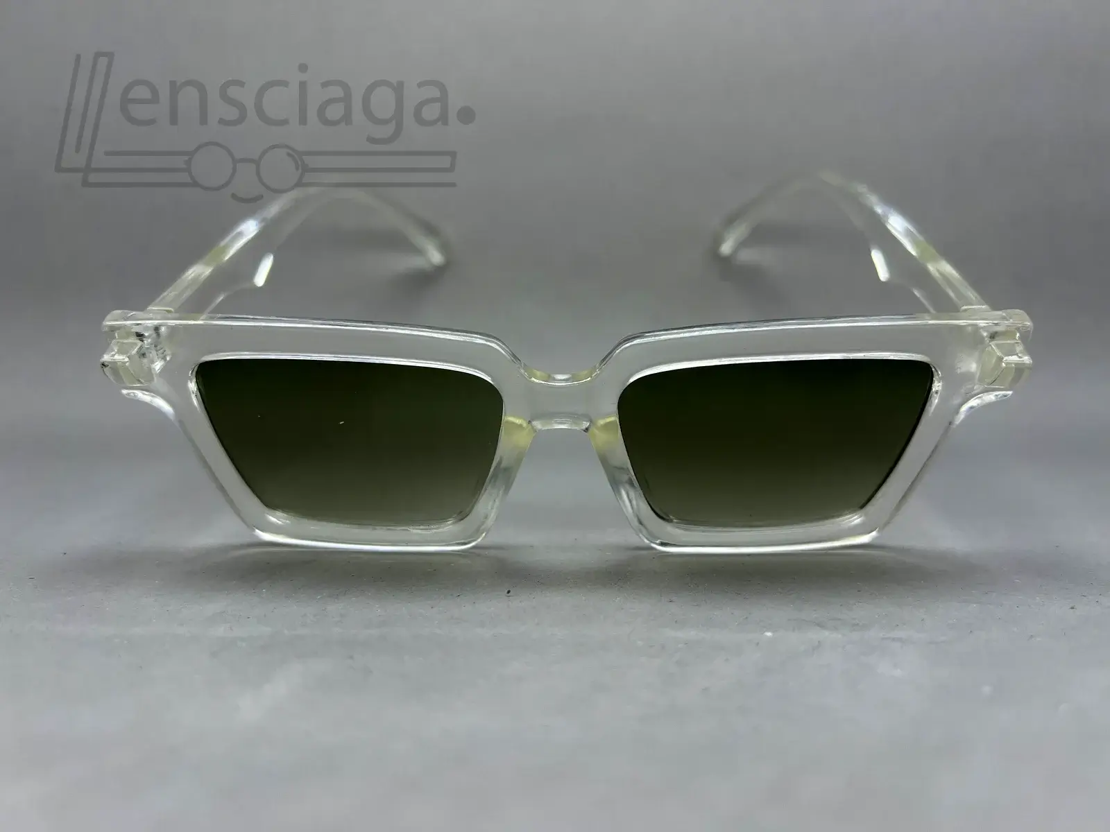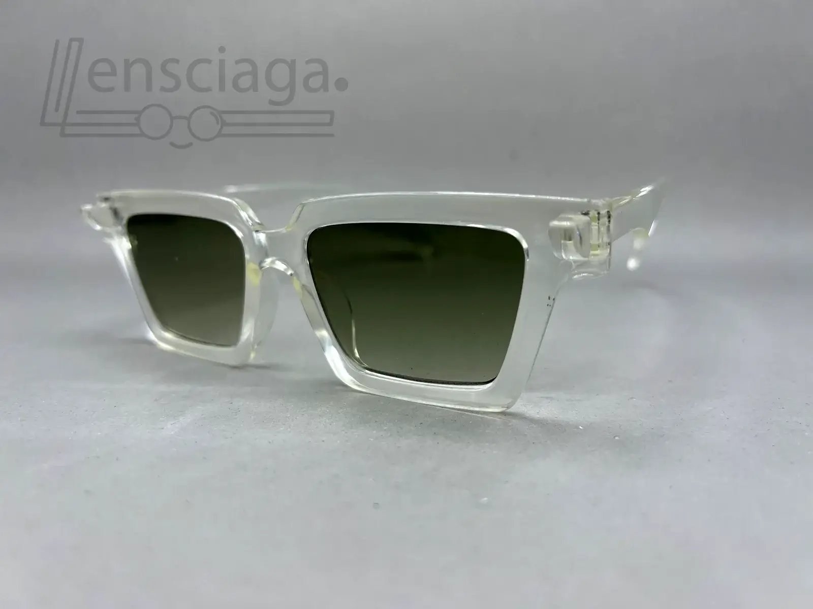 Transparent frame sunglasses with green-tinted lenses for a clean, modern everyday look.