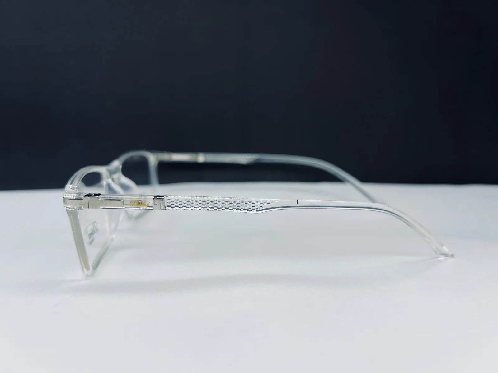 A sleek rectangular optical frame crafted in crystal-clear plastic, offering a lightweight, modern look with effortless everyday versatility.