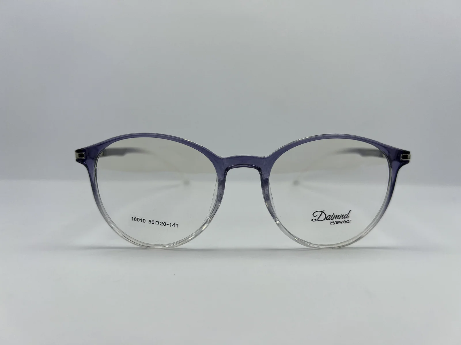 Crafted from high-quality lightweight plastic, the frame showcases a subtle gradient finish—smoke grey along the upper rim transitioning seamlessly into a clear lower front. This tonal contrast adds depth while preserving a clean, minimalist look. The transparent temples maintain the airy feel and enhance overall comfort.